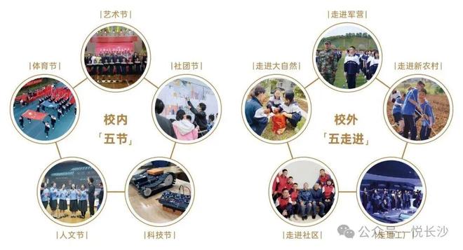 校外则通过“五走进”研学活动,带孩子们走进农村、军营、工厂、社区和自然。